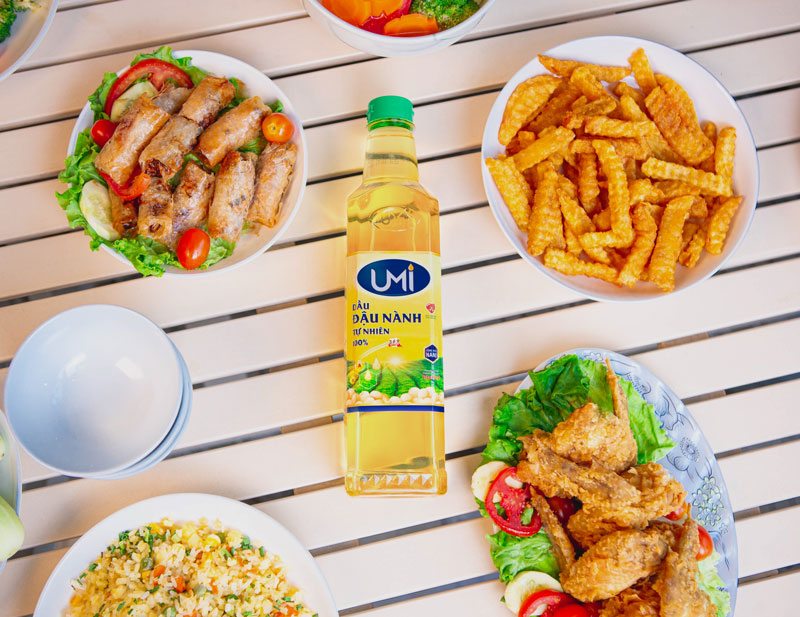 - Dầu đậu nành UMI cung cấp đủ 3 loại Acid béo không no Omega-3, Omega-6, Omega-9, có lợi cho cơ thể, tốt cho tim mạch.