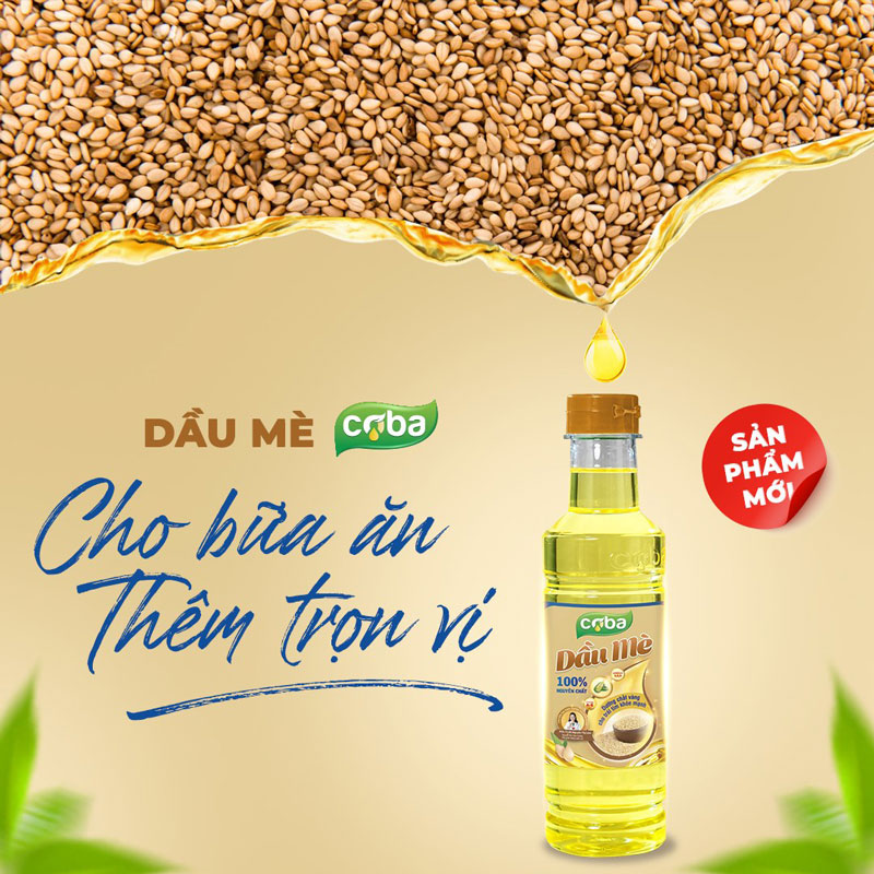 Dầu Mè Coba được sản xuất từ 100% nguyên chất hạt mè, chứa nhiều dinh dưỡng như omega 3,6,9 theo Công nghệ chế biến hiện đại, giúp lưu giữ lại lượng lớn vitamin E trong dầu, tăng cường bảo vệ sức khỏe tim mạch, hỗ trợ kiểm soát bệnh tiểu đường, giúp bộ xương chắc khỏe và cải thiện làn da, chống lão hóa hiệu quả