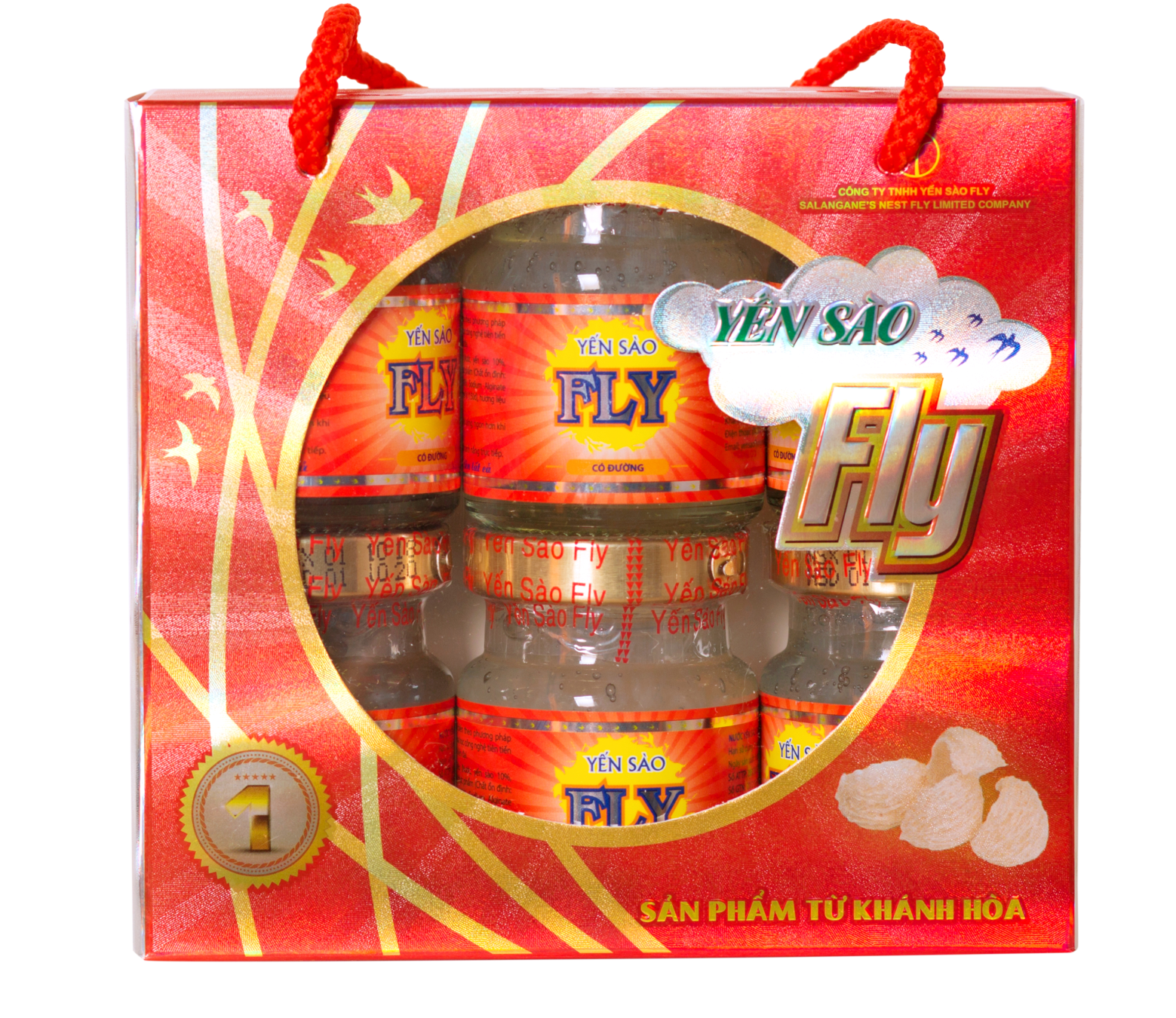 Thành phần: Nguyên liệu (nước, yến sào 10%, đường phèn), các phụ gia thực phẩm (Chất ổn định: Gellan Gum (418), Agar (406), Sodium Alginate (401), Caramel IV (150d), hương liệu dùng cho thực phẩm).